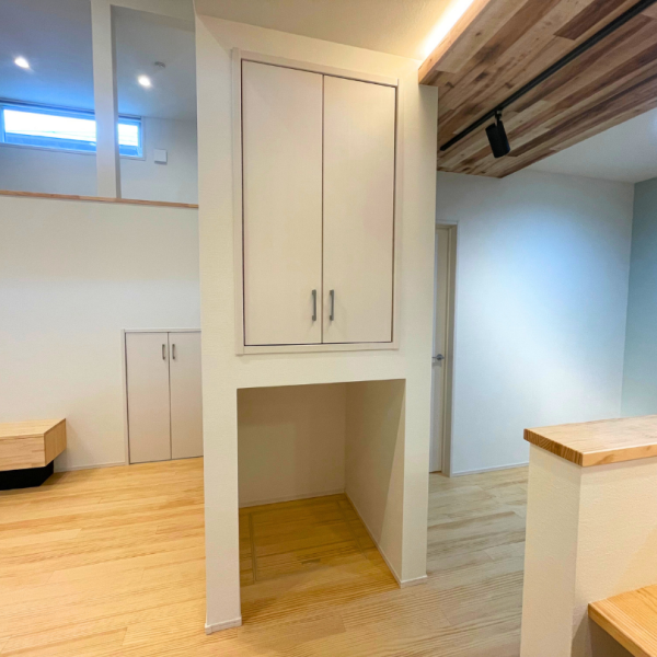 また、下のスペースを有効活用し、収納を設けることで、限られた空間の中でもゆとりある暮らしを実現しました。