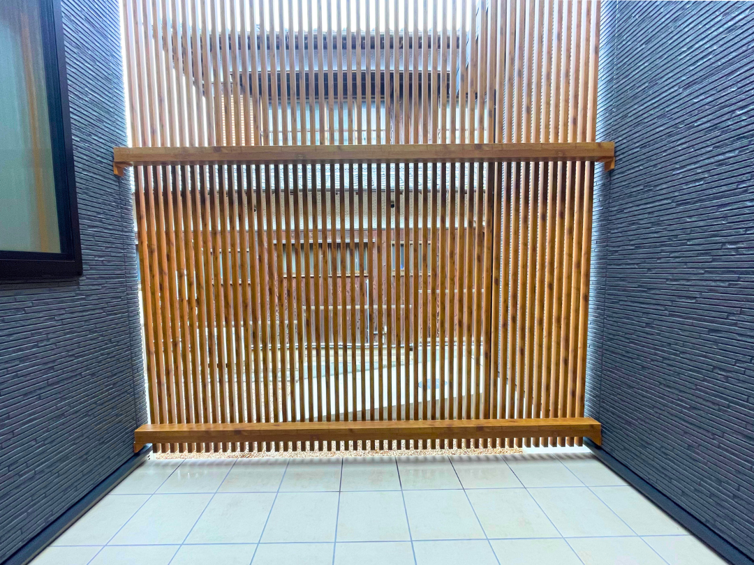 屋外には、格子で囲まれたプライベート空間を設けました。