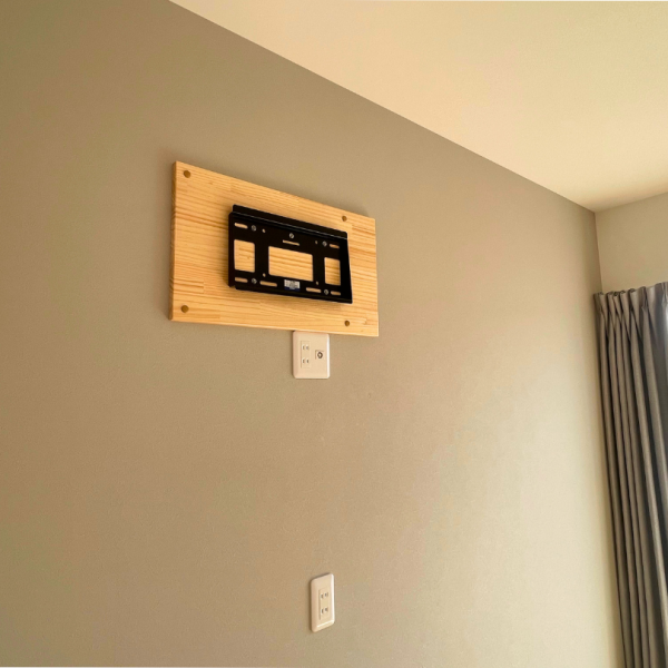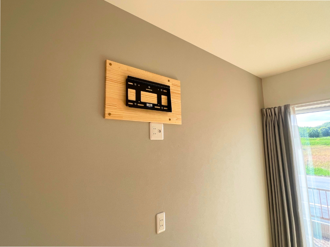 寝室には壁掛けテレビ用の下地を施工し、配線が見えないすっきり設計に。