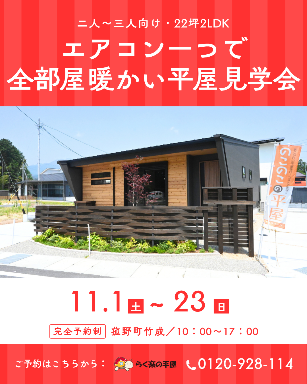 【二人~三人向け】エアコン一つで全部屋暖かい平屋見学会