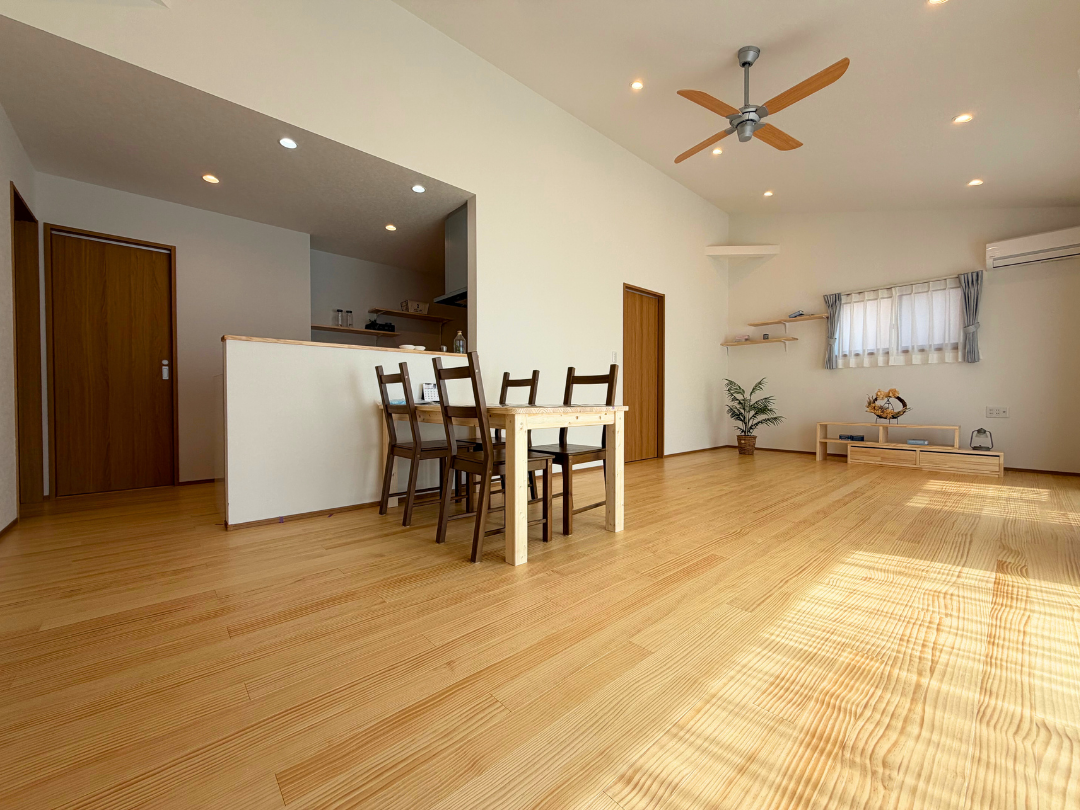 コンパクトな平屋ながら、LDKは20帖以上の広々空間。